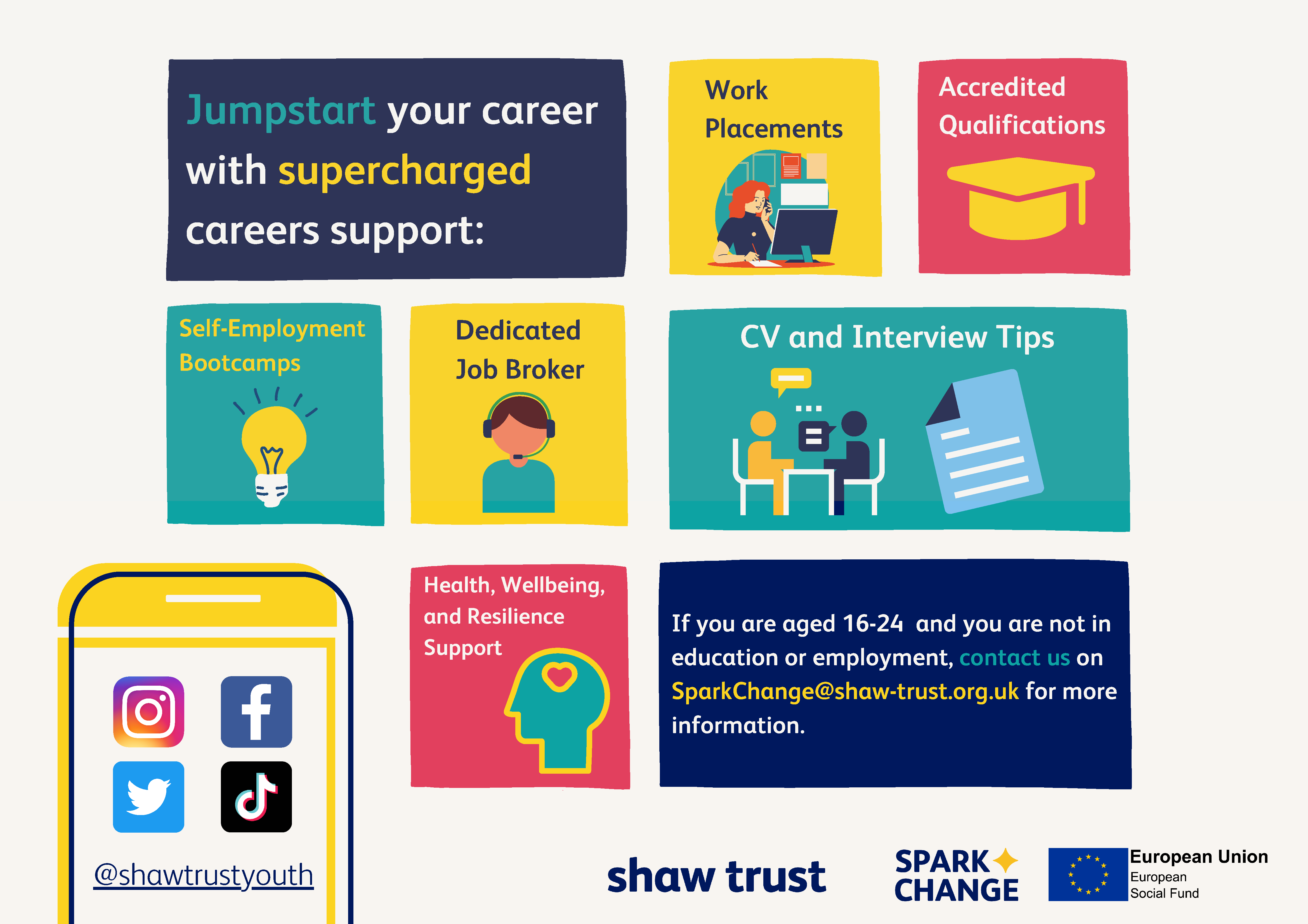 Prospects/Shaw Trust offers FREE health and wellbeing support, resilience training and cognitive behavioural therapy as part of their Spark Change programme, open to