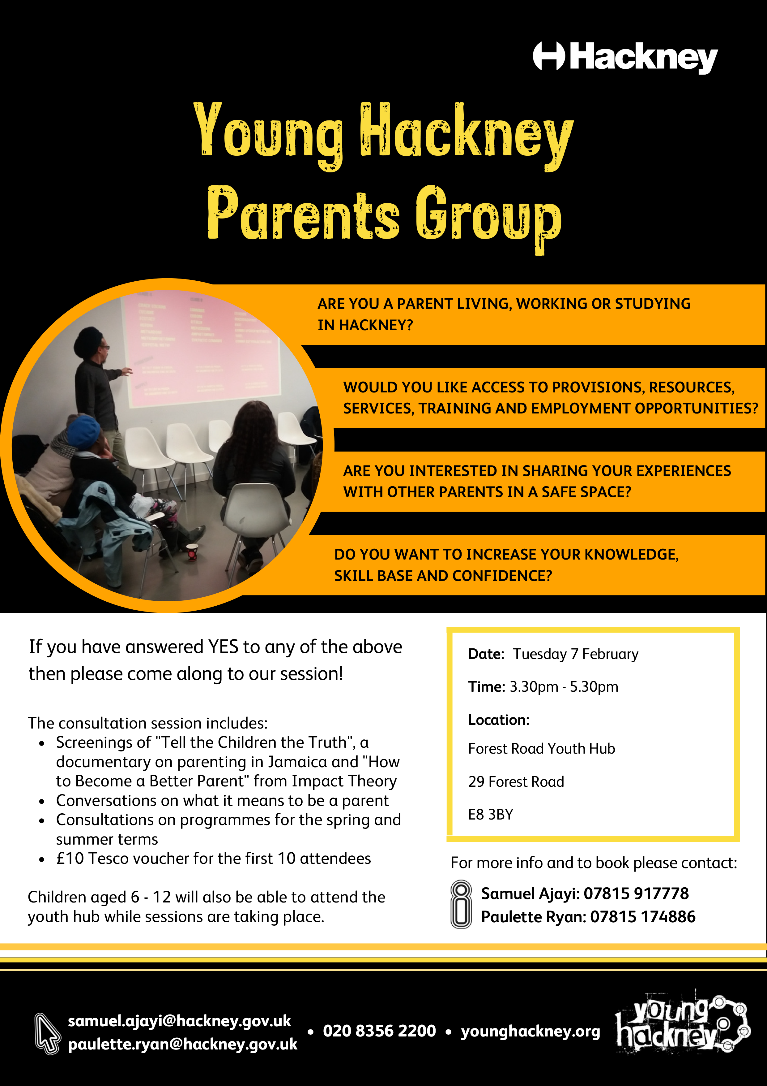 For more information, please email paulette.ryan@hackney.gov.uk or samuel.ajayi@hackney.gov.uk.